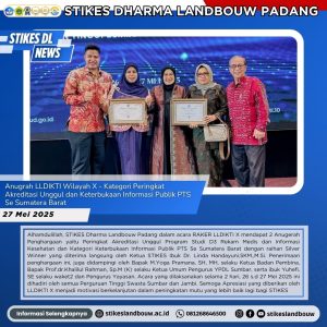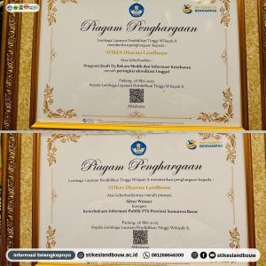 Alhamdulillah, STIKES Dharma Landbouw Padang dalam acara RAKER LLDIKTI X mendapat 2 Anugerah Penghargaan yaitu Peringkat Akreditasi Unggul Program Studi D3 Rekam Medis dan Informasi Kesehatan dan Kategori Keterbukaan Informasi Publik PTS Se Sumatera Barat dengan raihan Silver Winner yang diterima langsung oleh Ketua STIKES Ibuk Dr. Linda Handayuni,SKM.,M.Si.